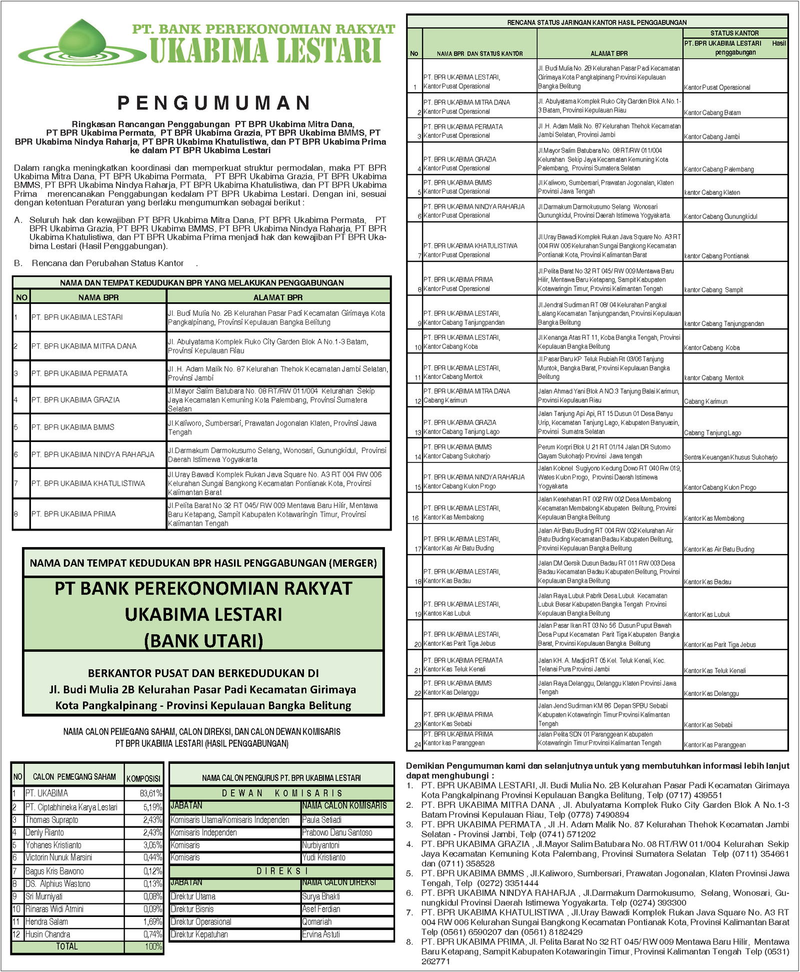 PT. Bank Perekonomian Rakyat Ukabima Nindya Raharja secara resmi menjadi bagian dari bisnis ekuitas pada bulan Juli 2004, BPR telah beroperasi selama 7 tahun di Paliyan Gunung Kidul – Yogyakarta, sekitar 16 kilometer dari Wonosari. Saat ini total ekuitas BPR adalah Rp 100.000.000, – dan total nasabah peminjam adalah 362 klien, 6 kelompok Kusuma dengan jumlah anggota kelompok adalah 71 klien dan 42% kliennya adalah perempuan. Sedangkan saham pemegang saham Ukabima dimiliki 60% sahamnya dan 40% dimiliki oleh Yayasan Ngesti Raharja. Dengan Ukabima sebagai pengelola mayoritas BPR memutuskan untuk memindahkan kantor ke Wonosari, dengan harapan kinerja BPR juga akan meningkat.